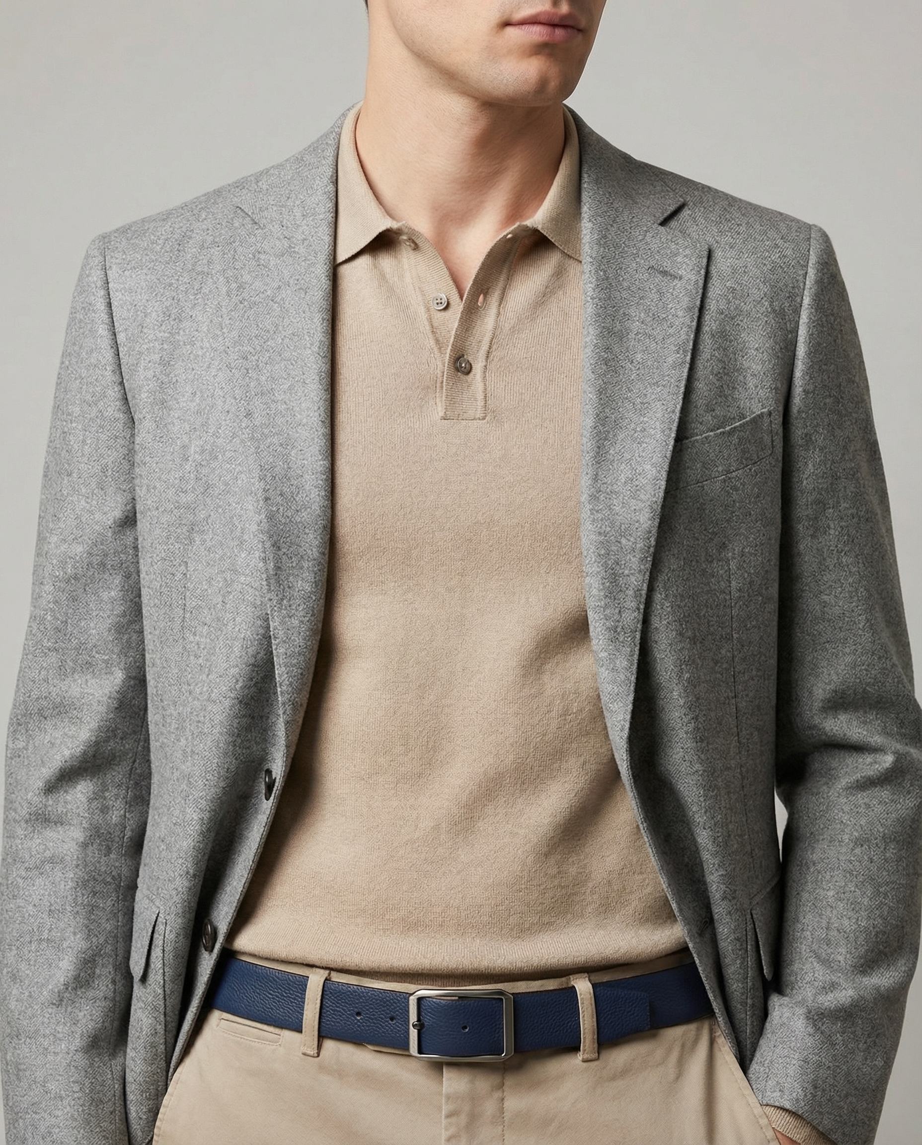 Questa cintura reversibile interpreta il lusso contemporaneo attraverso materiali nobili e lavorazioni tradizionali.