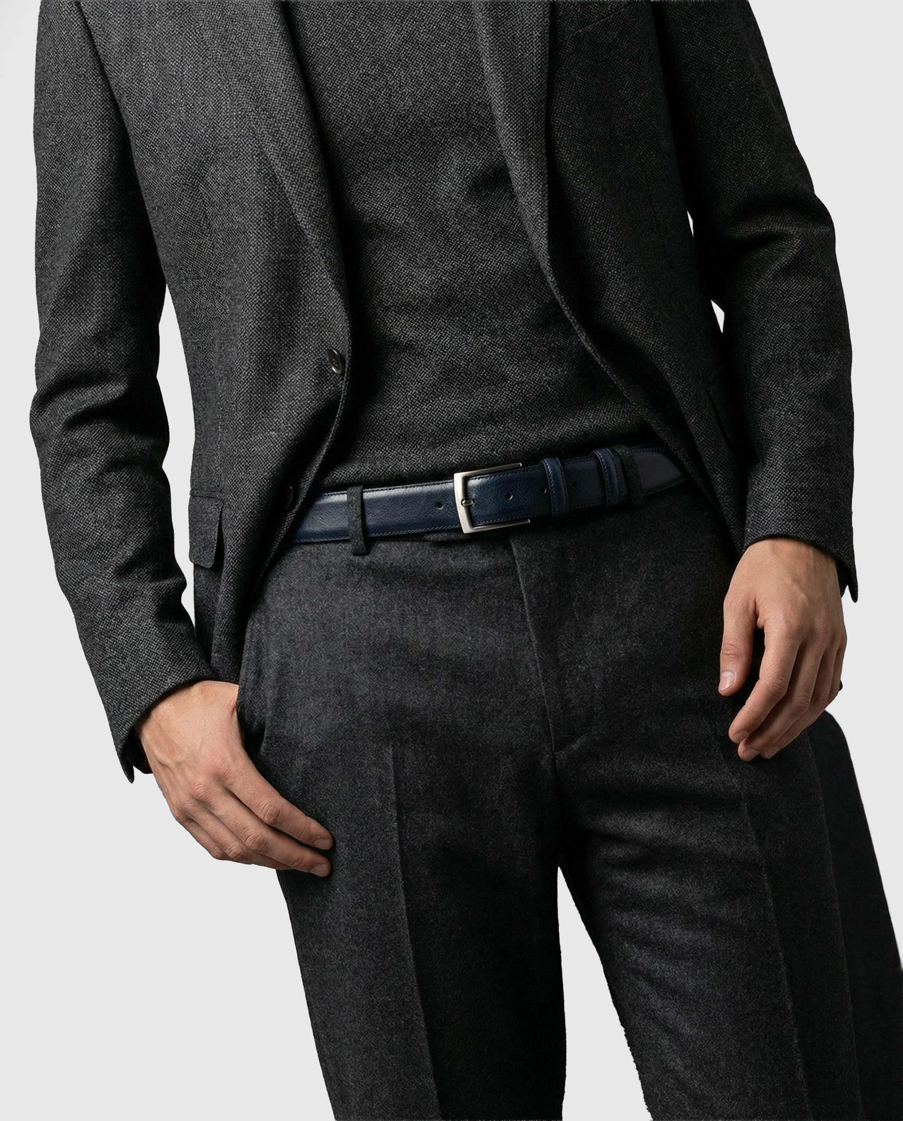 Equilibrio, sobrietà e tradizione artigianale italiana. Questa cintura in vitello di alta qualità presenta una stampa lineare discreta ispirata alle lavorazioni classiche della pelletteria sartoriale. La texture elegante e uniforme dona profondità alla superficie senza risultare invasiva, valorizzando il colore nero e la struttura della pelle. Con un’altezza di 35 mm, offre una vestibilità equilibrata e versatile, ideale sia per l’abito sartoriale sia per un pantalone più informale. La cucitura perimetrale tono su tono e la fibbia in finitura nickel satinato completano l’accessorio con sobria eleganza. Pensata per l’uomo che cerca qualità e coerenza stilistica senza rinunciare alla praticità quotidiana.