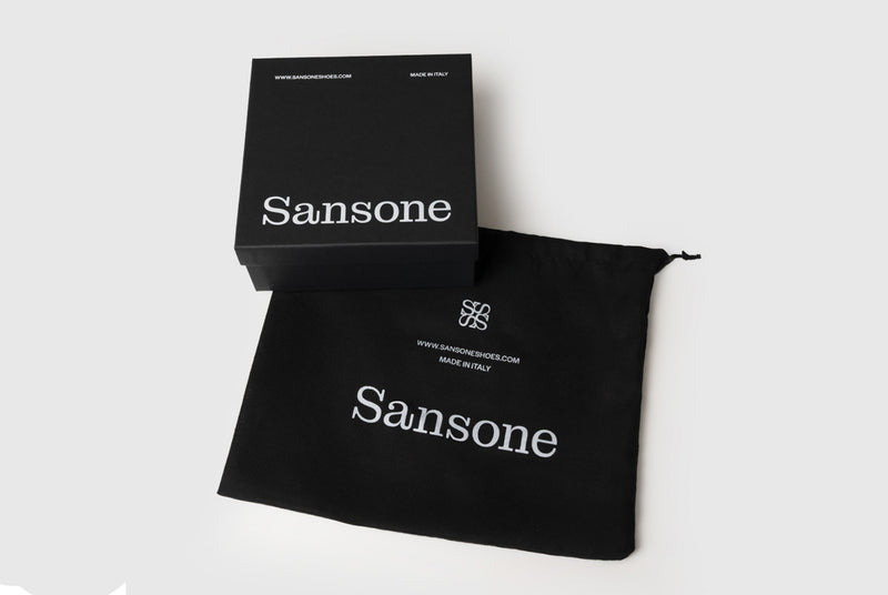 Le confezioni Sansone esprimono un’eleganza essenziale e contemporanea. La scatola nera e la sacca coordinata valorizzano ogni dettaglio, richiamando la cura e la qualità dell’artigianalità italiana.