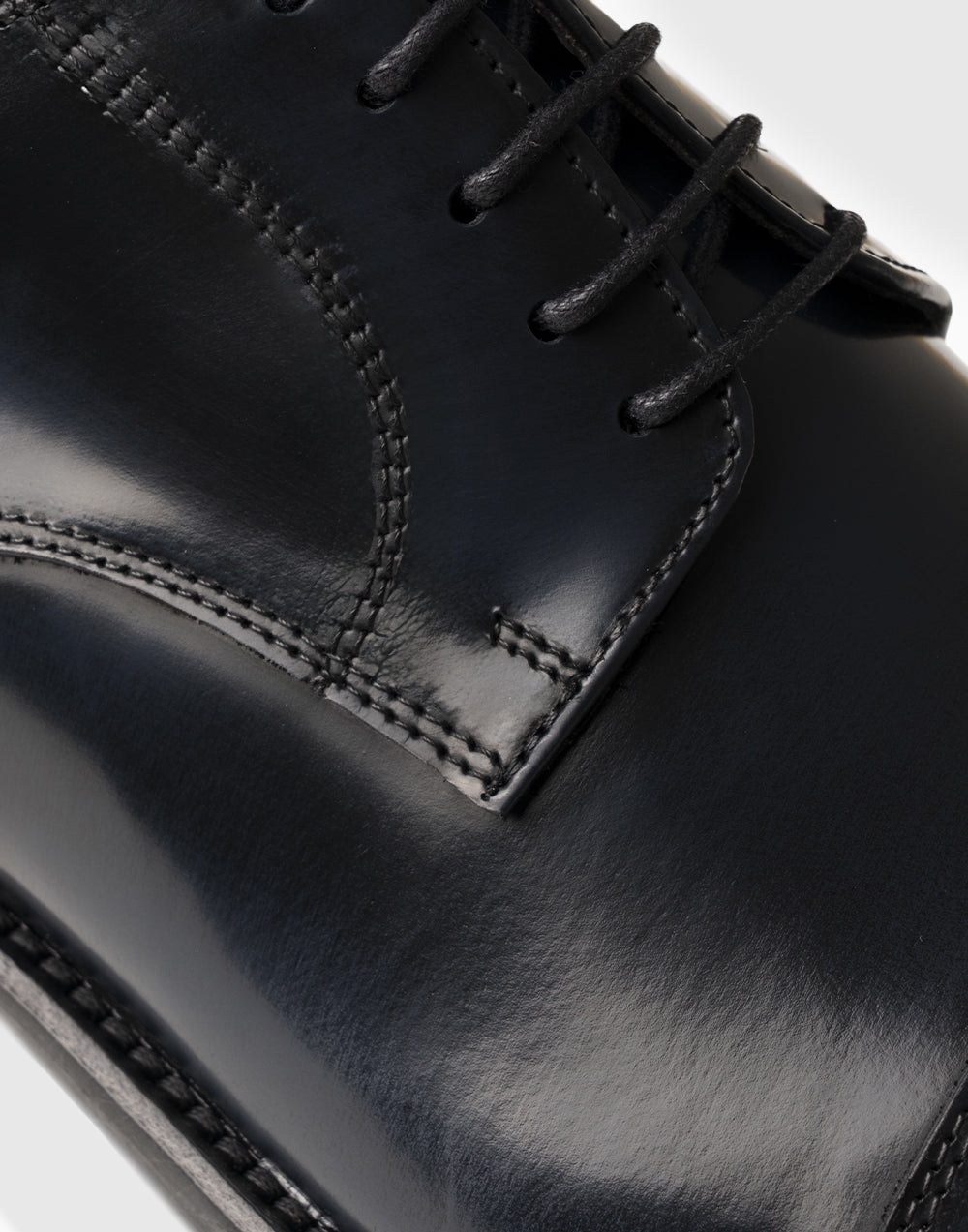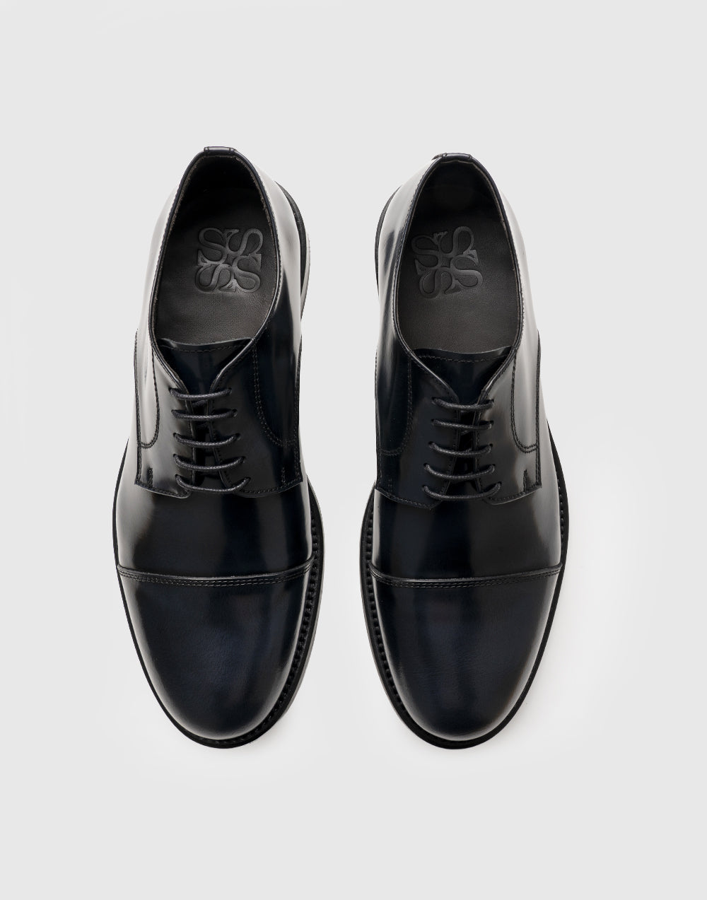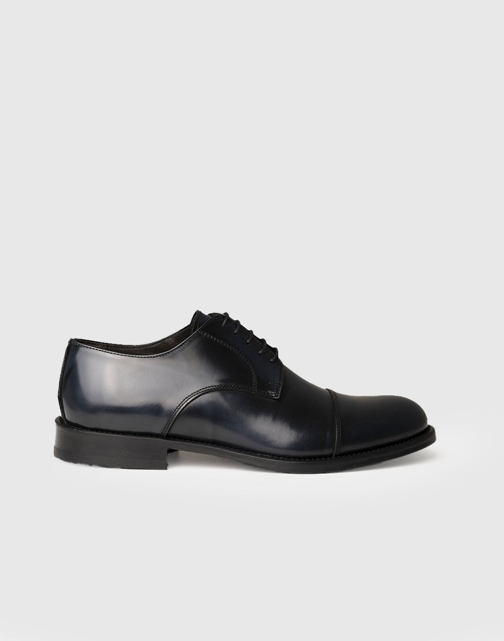 Questa derby interpreta l’eleganza formale con un linguaggio contemporaneo, grazie alla pelle di vitello abrasivata che dona profondità e luminosità alla tomaia. Le linee pulite, la punta leggermente affusolata e la cucitura a cassetta sulla parte anteriore conferiscono un carattere raffinato e intramontabile.