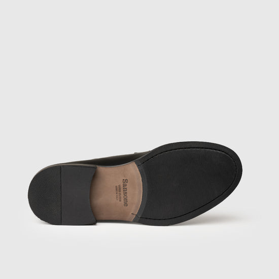 La tomaia è realizzata in pelle di vitello abrasivata, scelta per la sua superficie compatta e luminosa. L’interno è completamente foderato in pelle, assicurando morbidezza e comfort durante l’intera giornata. La suola in cuoio con inserto antiscivolo e tacco in TR un derivato della gomma offre stabilità e durata senza rinunciare alla leggerezza.