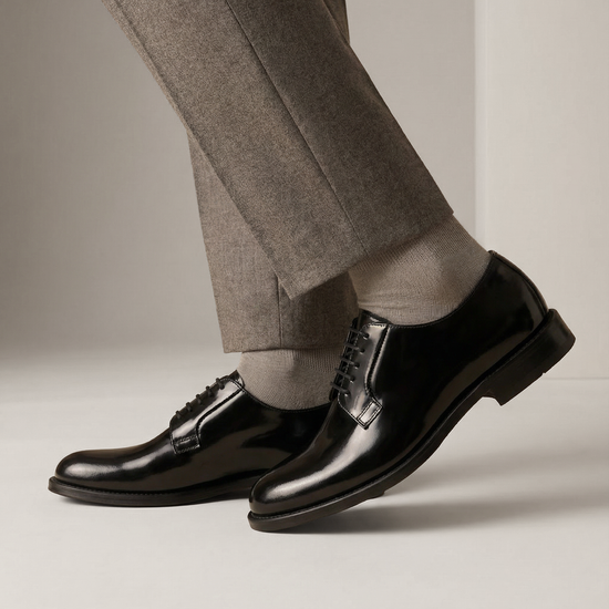 Questa derby in vitello abrasivato interpreta un classico dell’eleganza maschile con un’estetica pulita e contemporanea. Le proporzioni equilibrate e la brillantezza naturale del pellame valorizzano la silhouette, rendendola adatta sia agli abbinamenti formali sia a quelli più quotidiani. La costruzione artigianale e la scelta di materiali pregiati esprimono l’identità Sansone, unendo tradizione, comfort e raffinatezza.
