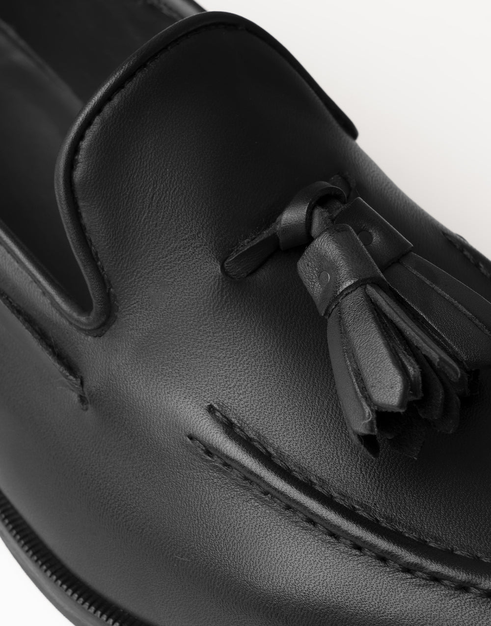 Il mocassino in vitello abrasivato con nappine interpreta un grande classico dello stile maschile attraverso linee pulite e una finitura lucida che valorizza la silhouette della calzatura. La lucentezza profonda tipica dell’abrasivatura dona movimento alle superfici e aggiunge un tocco di eleganza contemporanea.