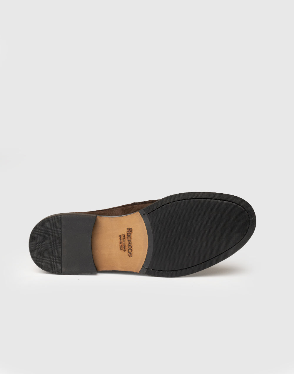 La suola è realizzata in cuoio naturale, arricchito da un inserto antiscivolo per garantire maggiore aderenza, mentre il tacco è realizzato in TR, un materiale derivato dalla gomma che migliora durata e stabilità senza appesantire la calzatura.