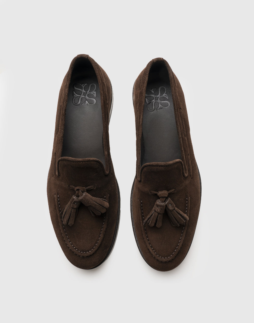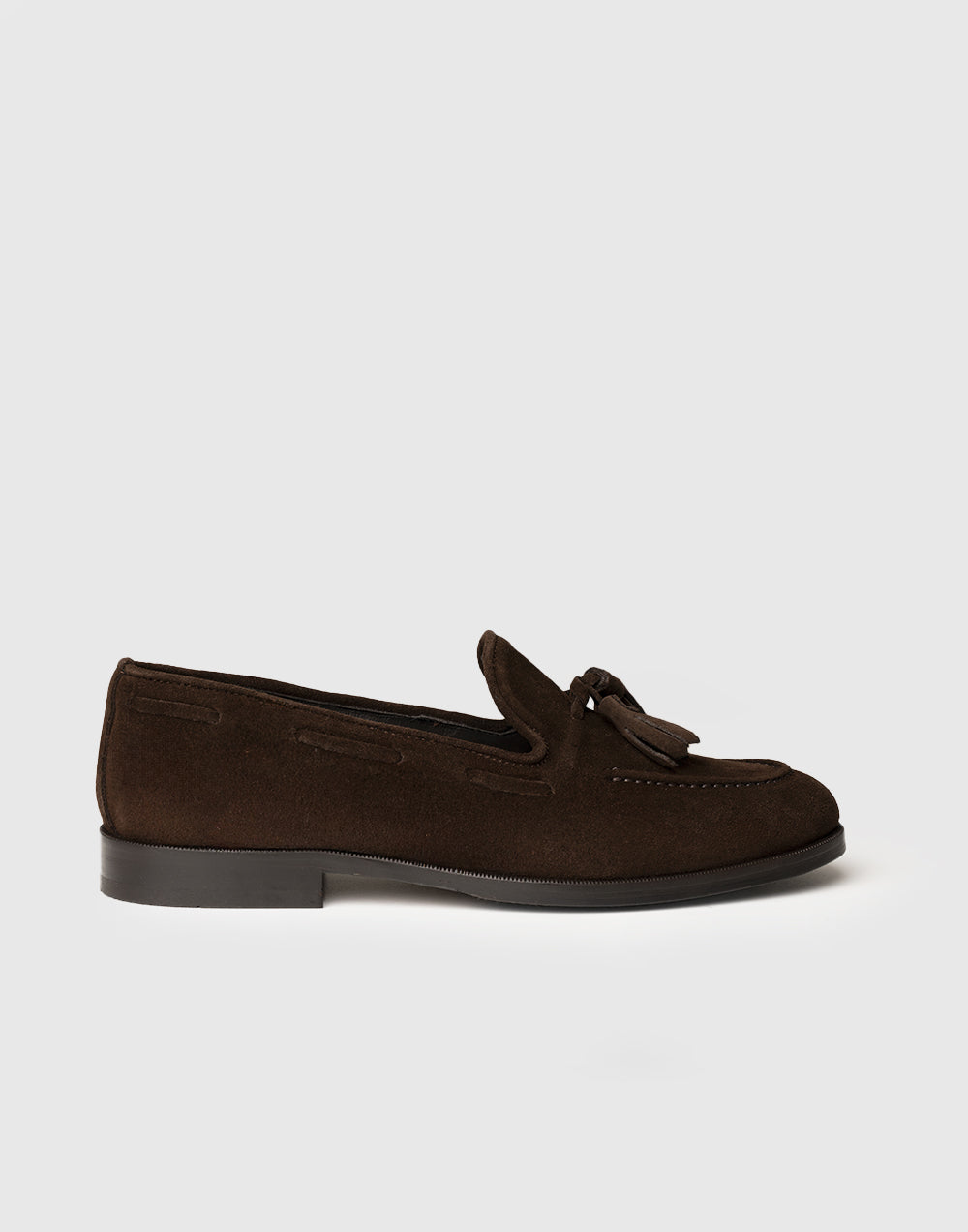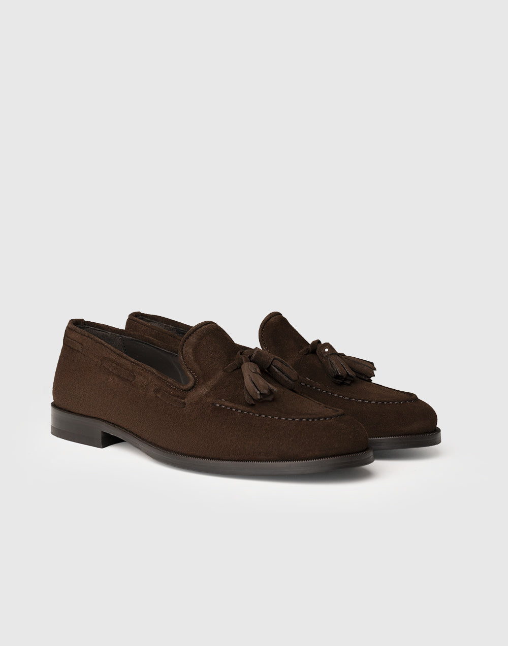 Realizzato in morbido vitello scamosciato, questo mocassino interpreta un’eleganza senza tempo attraverso linee essenziali e lavorazioni artigianali. La mascherina con nappine aggiunge un dettaglio classico ma sempre attuale, mentre la costruzione leggera lo rende ideale per un uso quotidiano, dal contesto formale ai momenti più rilassati. La texture vellutata del suede esalta la profondità del colore, offrendo un equilibrio perfetto tra comfort, stile e raffinatezza.