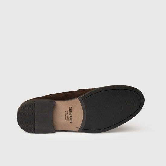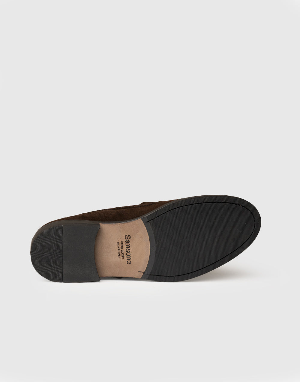 Il vitello scamosciato viene selezionato per la sua grana fine e la morbidezza al tatto, qualità che donano al mocassino un aspetto ricercato e naturale. La superficie vellutata accentua la tonalità piena e calda del pellame, mantenendo traspirabilità e comfort.