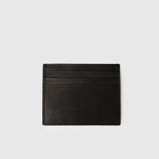 Realizzato in vitello pieno fiore nero, questo portacarte esprime la qualità autentica dei pellami selezionati secondo tradizione italiana. La pelle, morbida al tatto e naturalmente resistente, presenta una superficie compatta ed elegante che valorizza la profondità del colore e garantisce una lunga durata nel tempo.