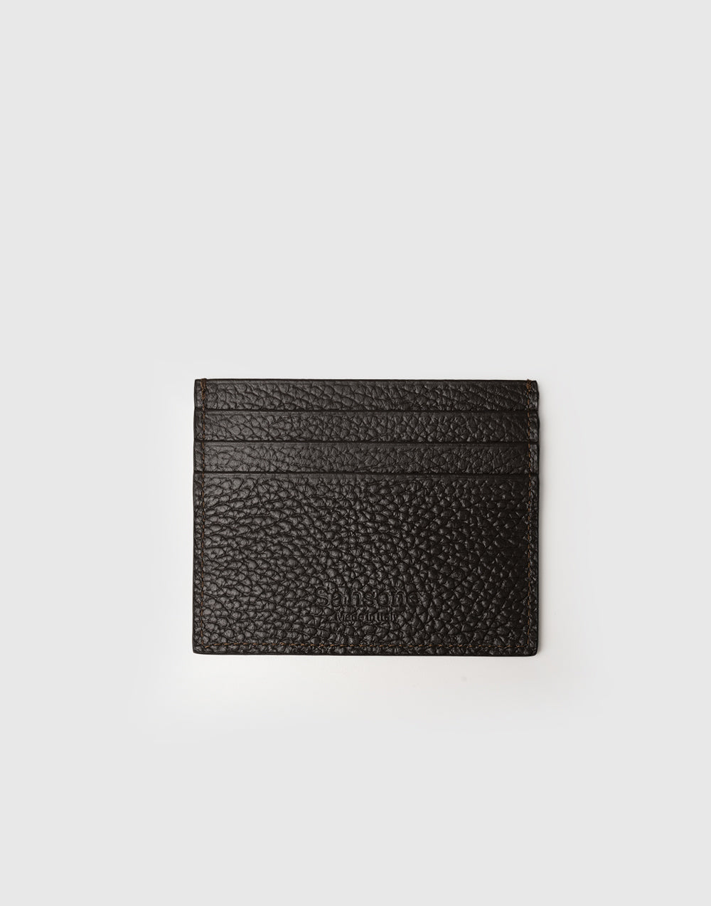 Realizzato in pelle bottalata color moro, questo portacarte si distingue per la grana piena e irregolare, ottenuta attraverso un processo di bottalatura che rende la pelle più elastica, resistente e naturalmente morbida.