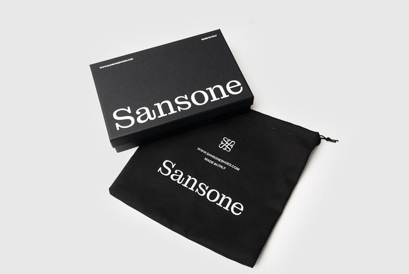 Le confezioni Sansone esprimono un’eleganza moderna e minimale, pensata per valorizzare ogni dettaglio. La scatola nera e la sacca coordinata evocano un’estetica pulita e raffinata, ispirata alla precisione e alla qualità del saper fare italiano.