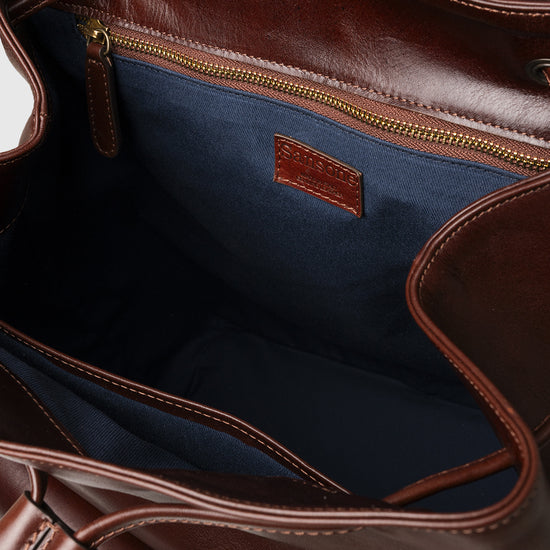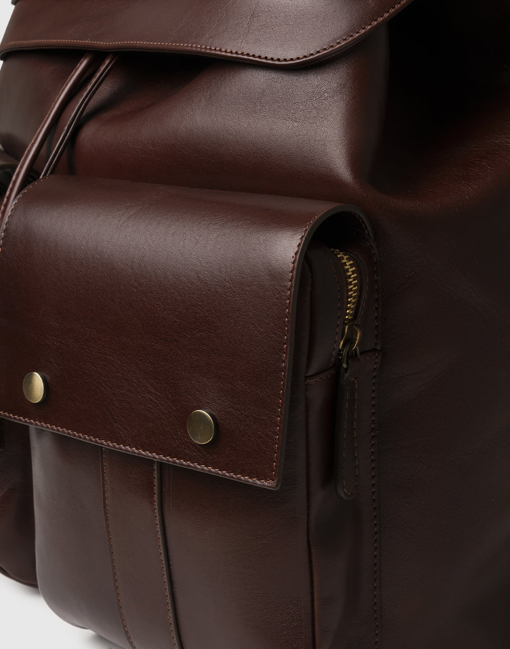 Lo stile di questo zaino unisce linee essenziali e materiali pregiati. La pelle di vitello tamponata a mano, morbida e leggera, è valorizzata da una lieve grana naturale e da finiture che creano un raffinato effetto chiaroscuro dal gusto vintage. La chiusura con coulisse regolabile, protetta da una patta dotata di calamite, garantisce praticità e sicurezza nell’uso quotidiano. L’esterno si completa con una tasca con zip e due tasche frontali con patta, calamite e chiusura a zip, ideali per gli oggetti da tenere a portata di mano. L’ampio scomparto interno, foderato in cotone resinato, presenta una tasca zip, una tasca documenti e due pratiche tasche multifunzione che organizzano al meglio lo spazio.