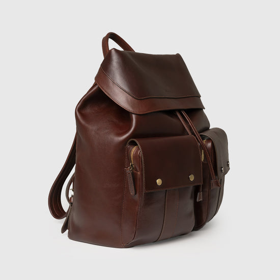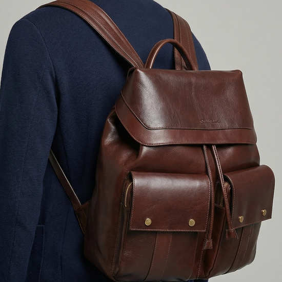 Zaino in Pelle Pieno Fiore con Tasche Frontali
